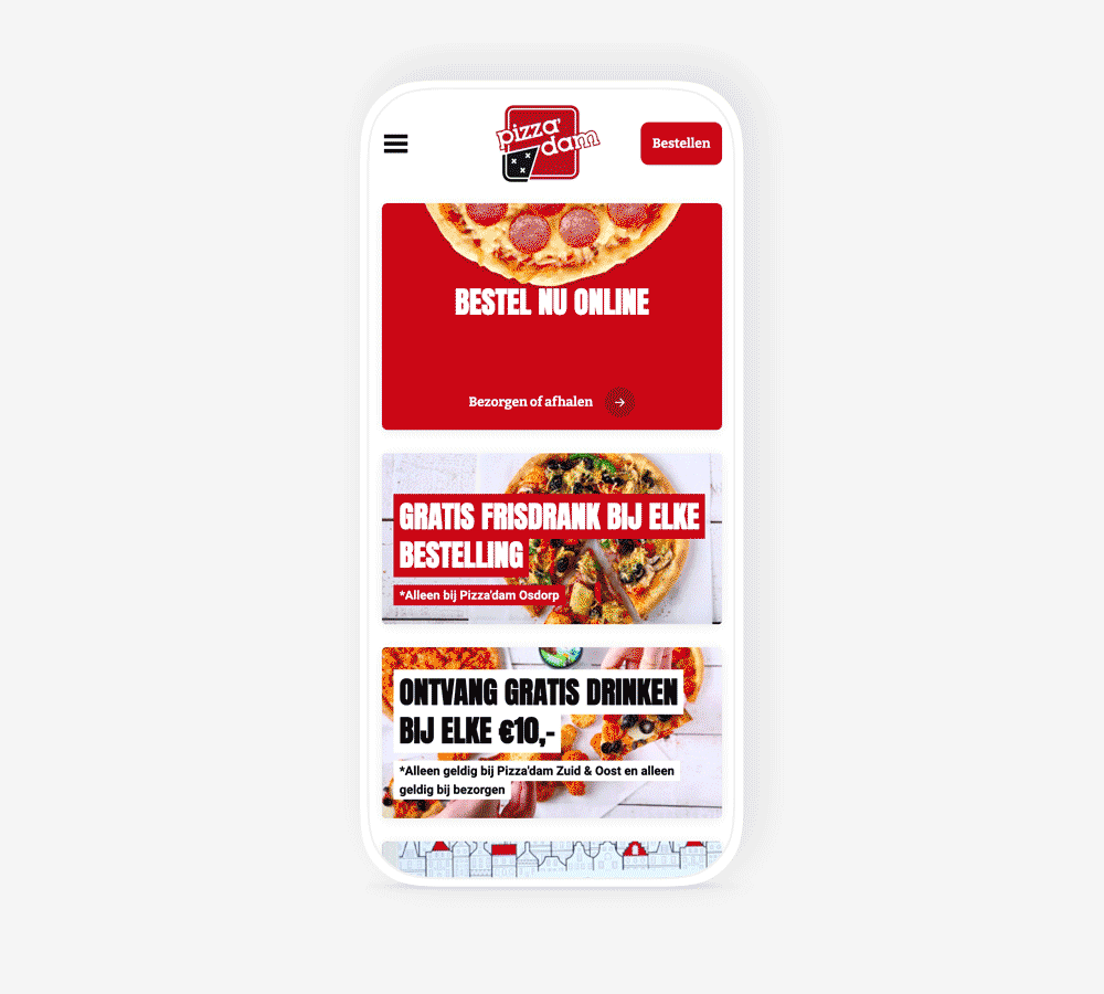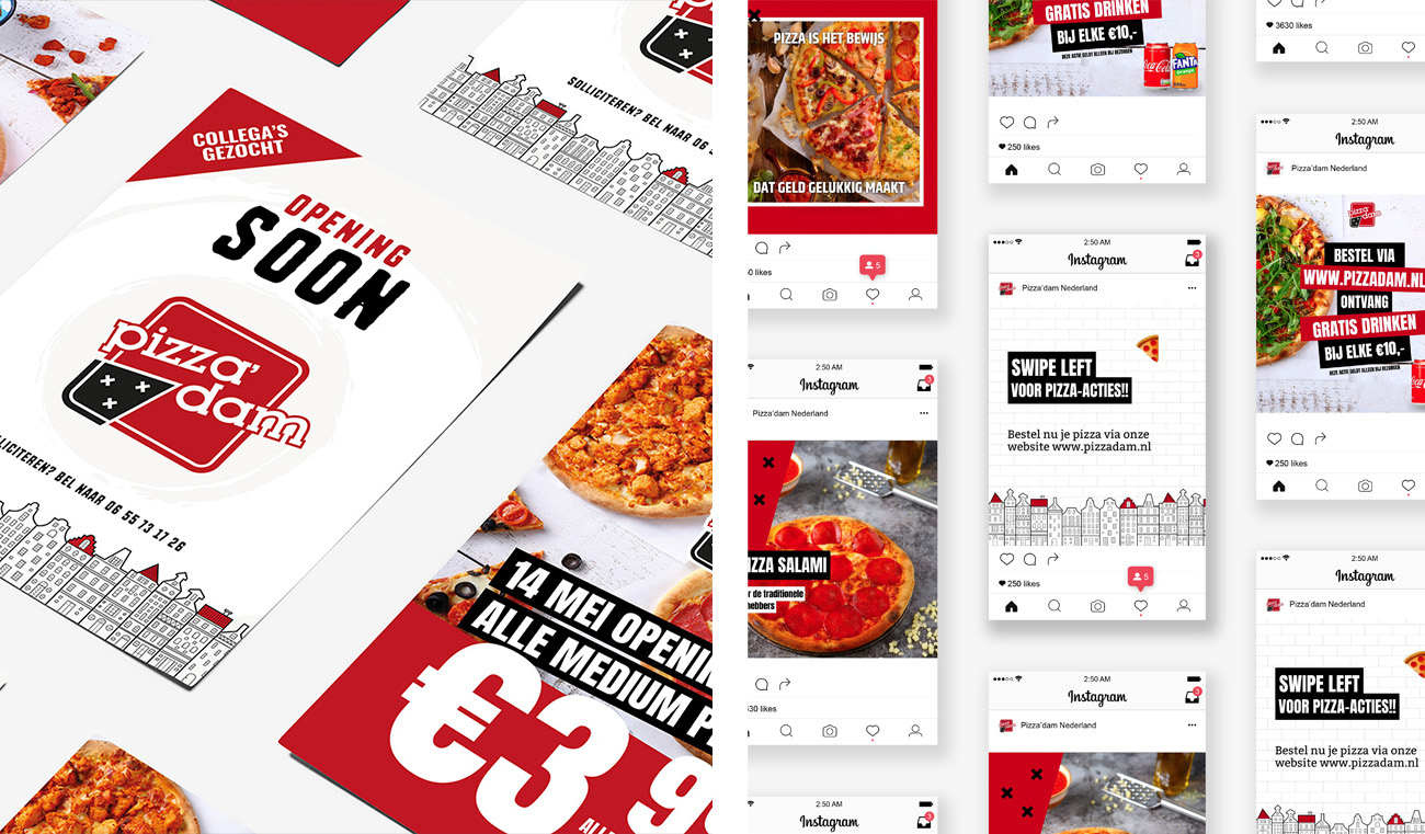 Pizza’dam wilt alle kanalen inzetten op zijn klanten te bereiken. Nieuwe website, nieuwe social media kanaal en grafische ondersteuning bij het ontwikkelen van posters, menukaarten en advertenties. Van TikTok tot aan instagram we hebben alles vernieuwd en aangepast naar de branding van Pizza’dam.