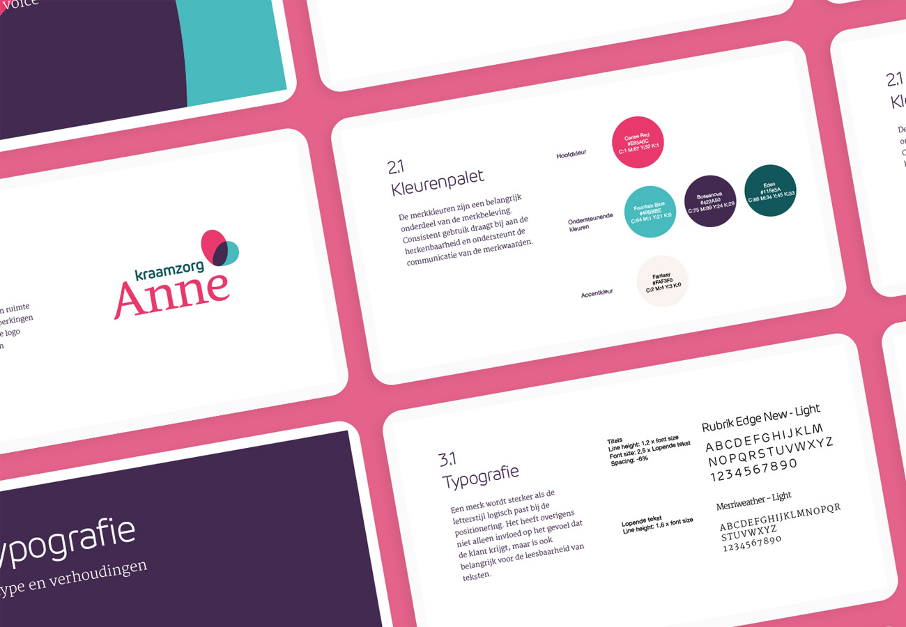 Wil je ook een sterk merkimago net als een van jou voorgangers? Bekijk hiernaast de brandguide van Kraamzorg Anne met daarin alle eigenschappen en onderscheidende elementen van hun merk.